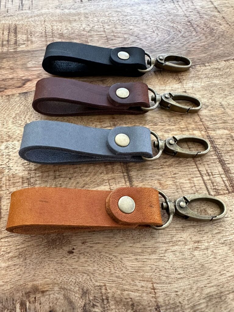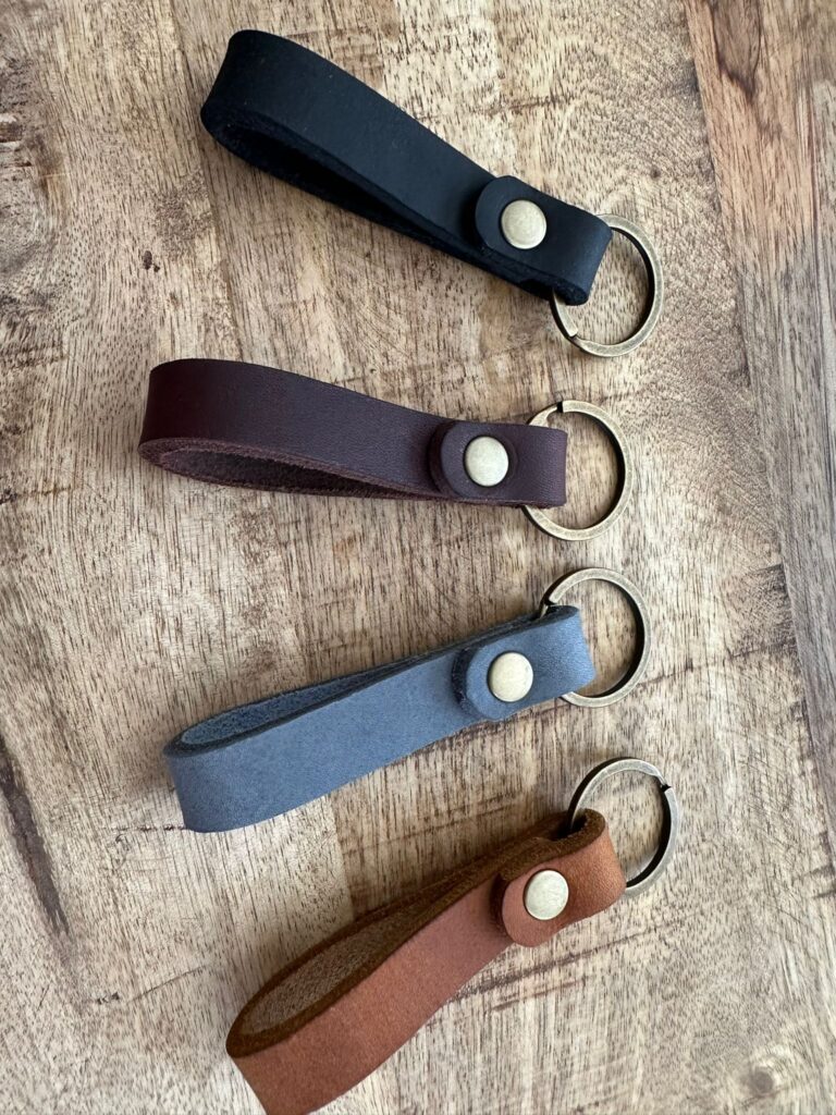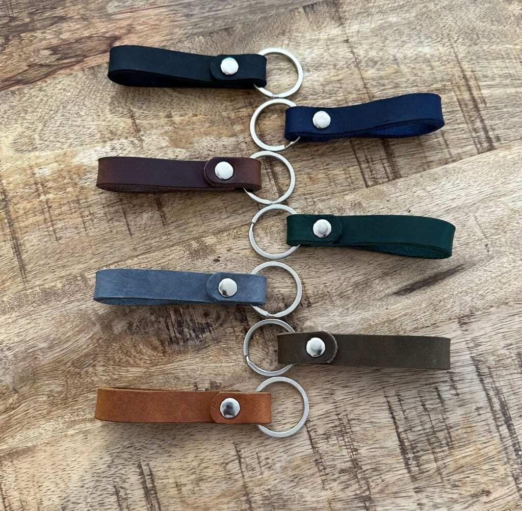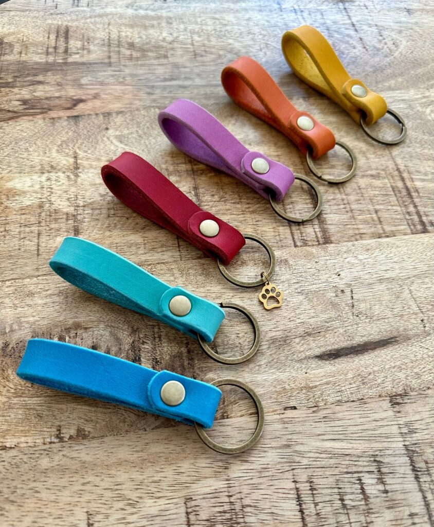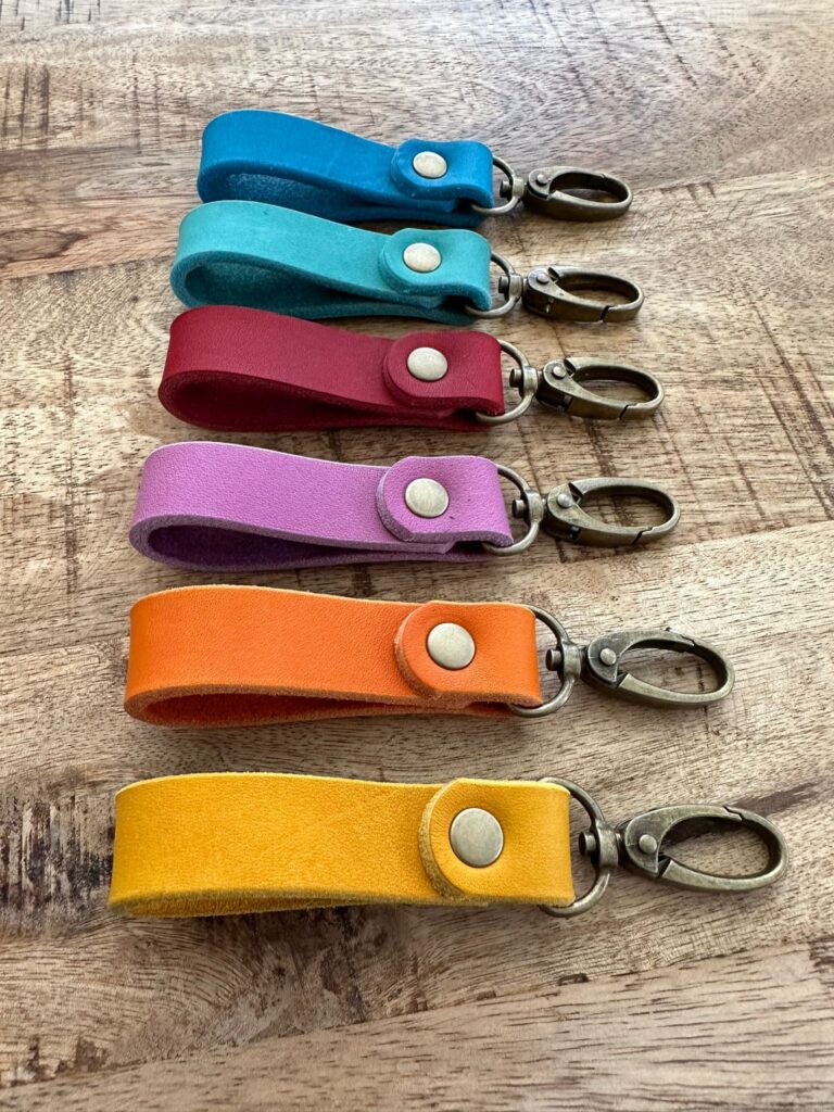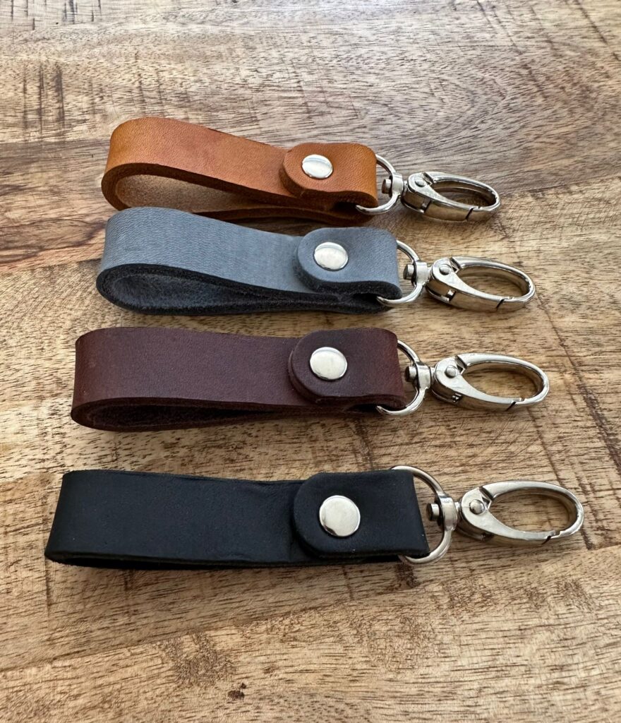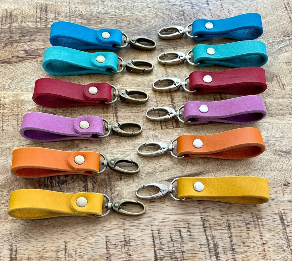 Handgefertigte Schlüsselanhänger aus Echtleder in unterschiedlichen Farben mit Karabiner oder Ring