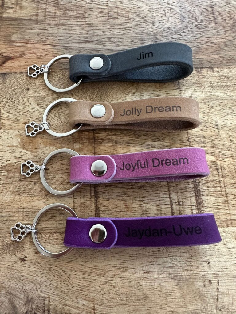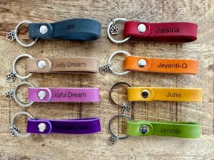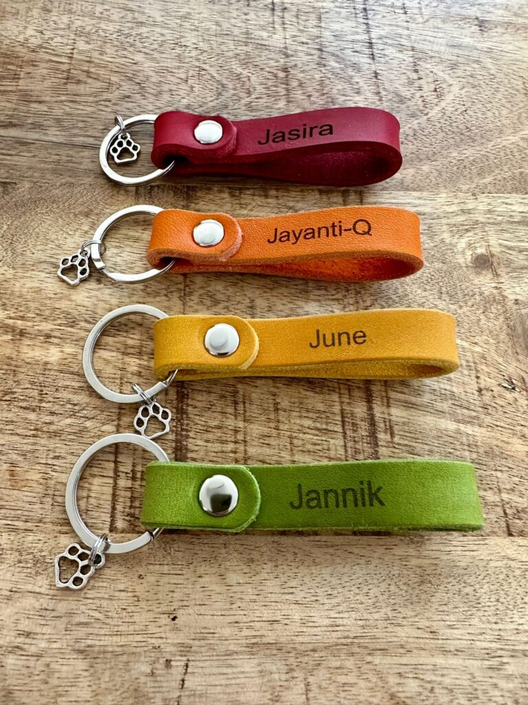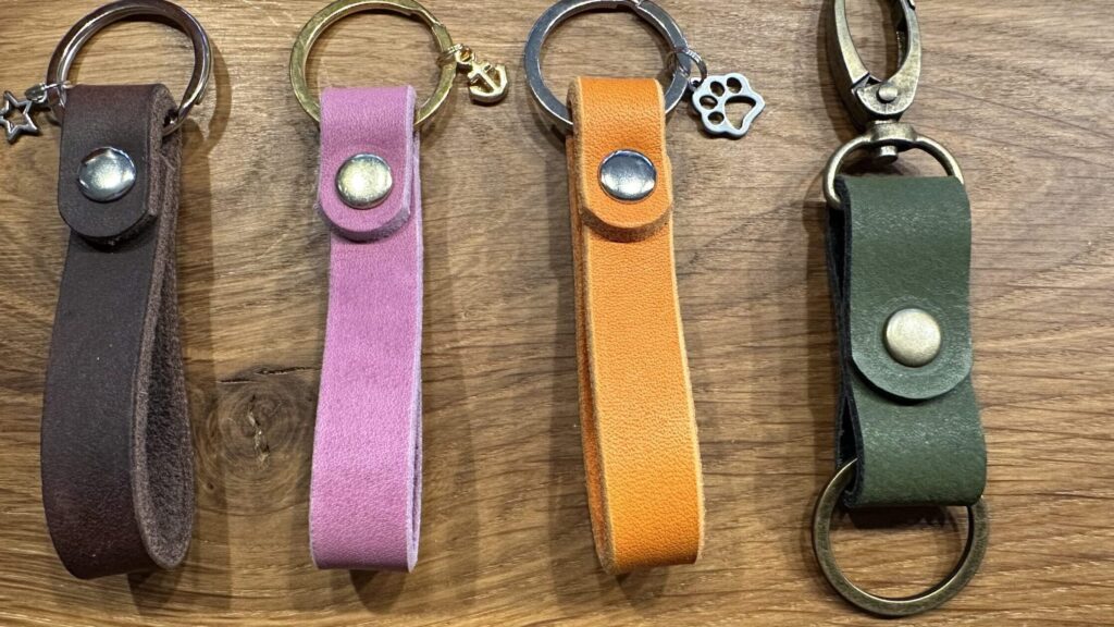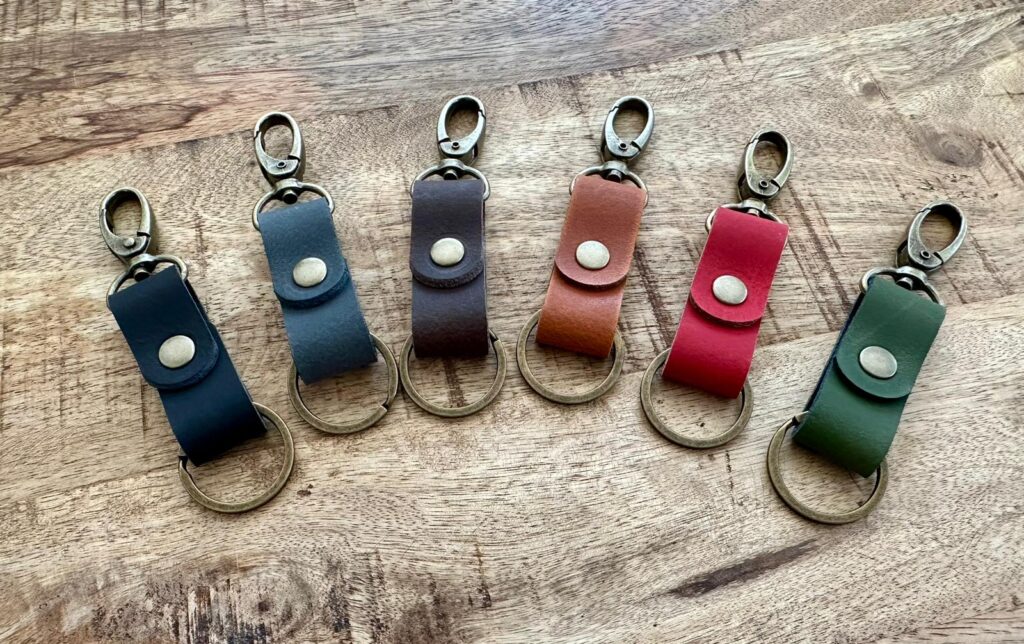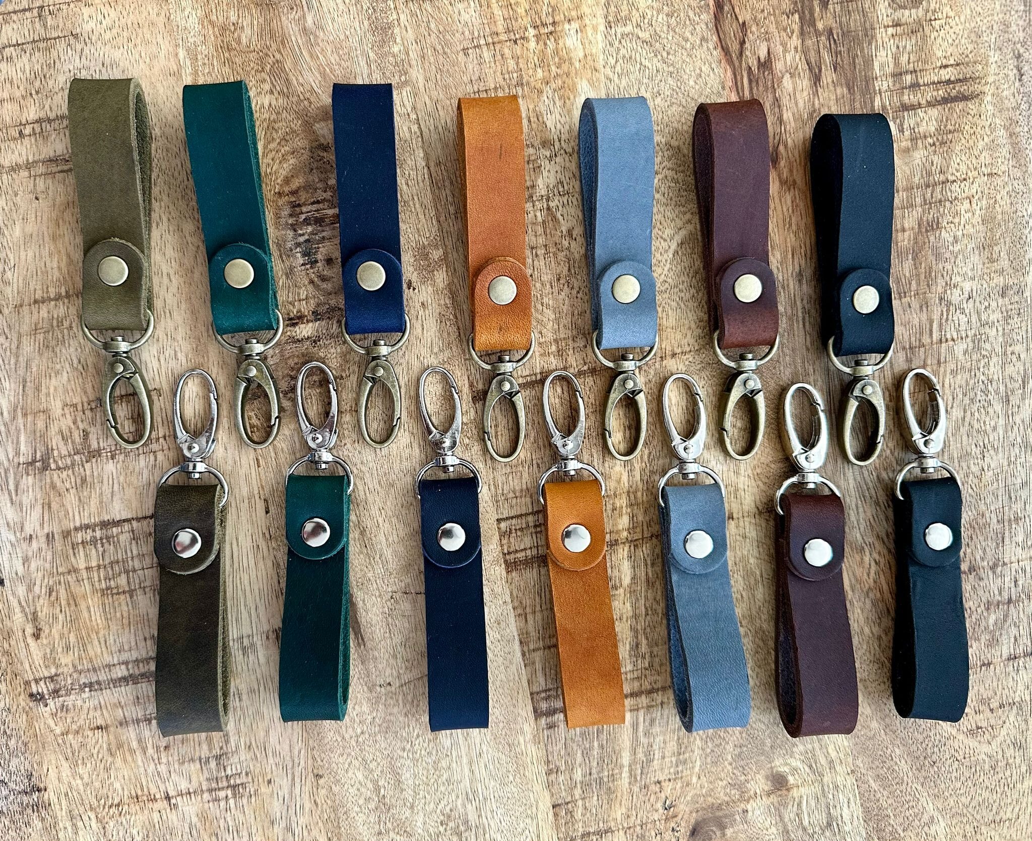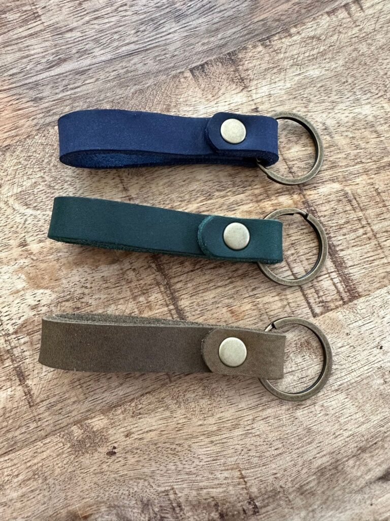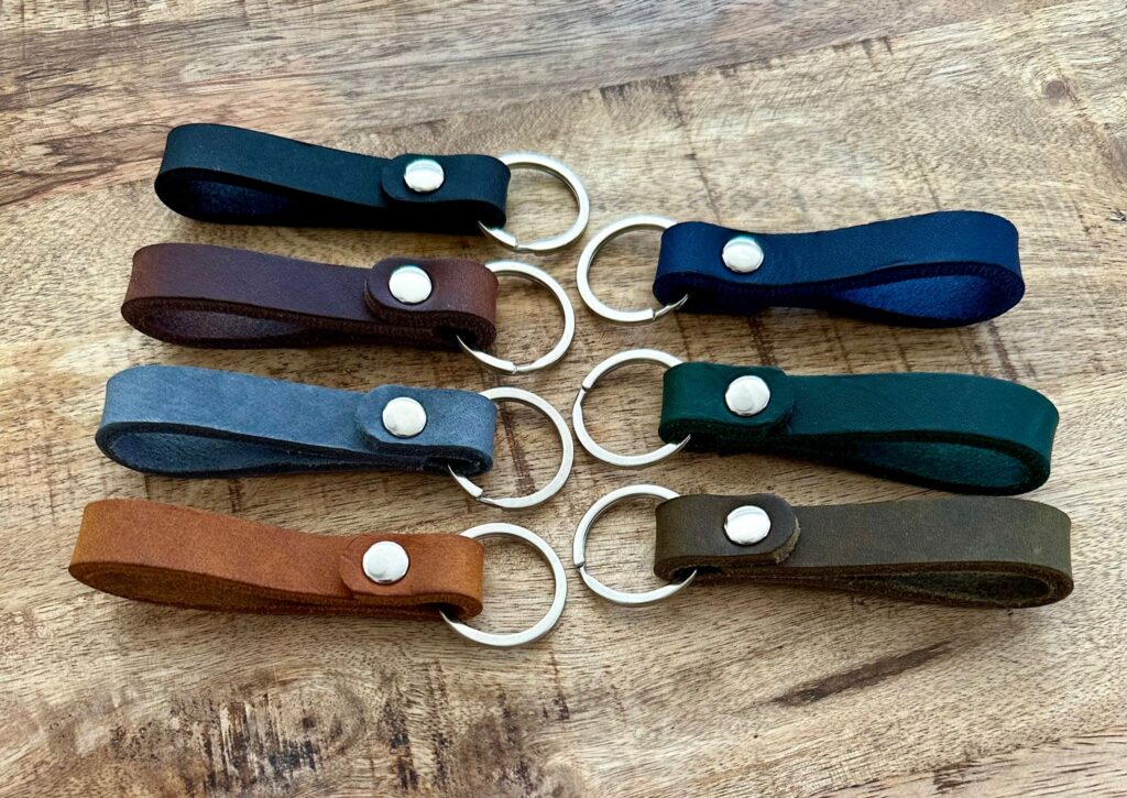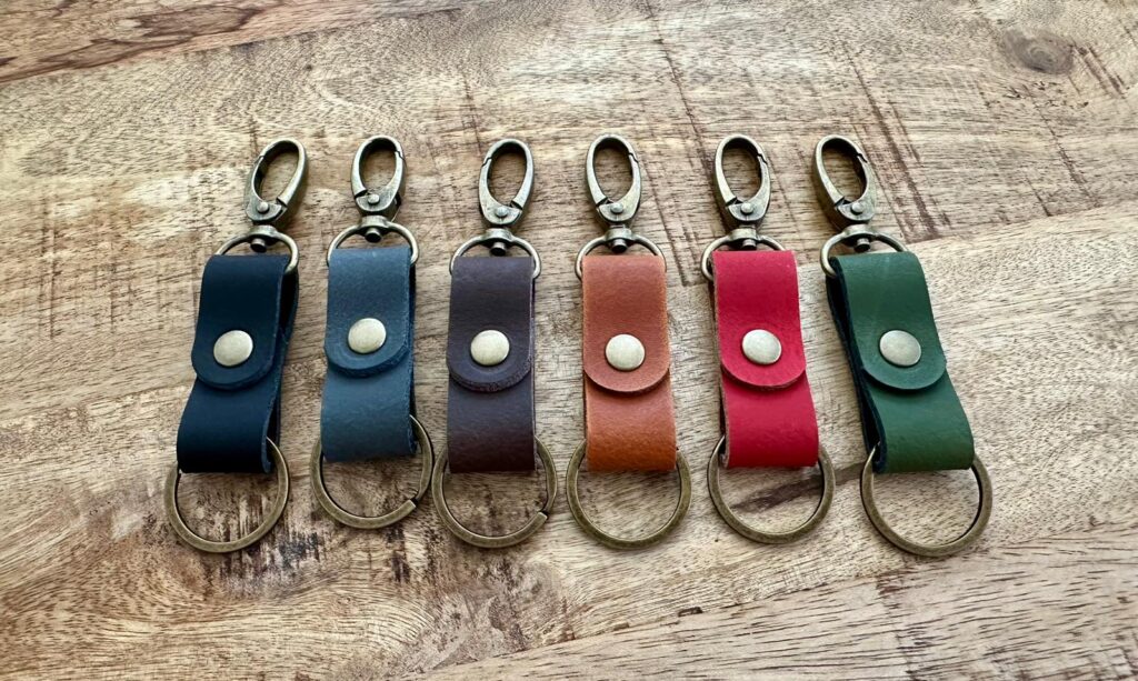 Handgefertigte Schlüsselanhänger aus Echtleder in unterschiedlichen Farben mit Karabiner oder Ring